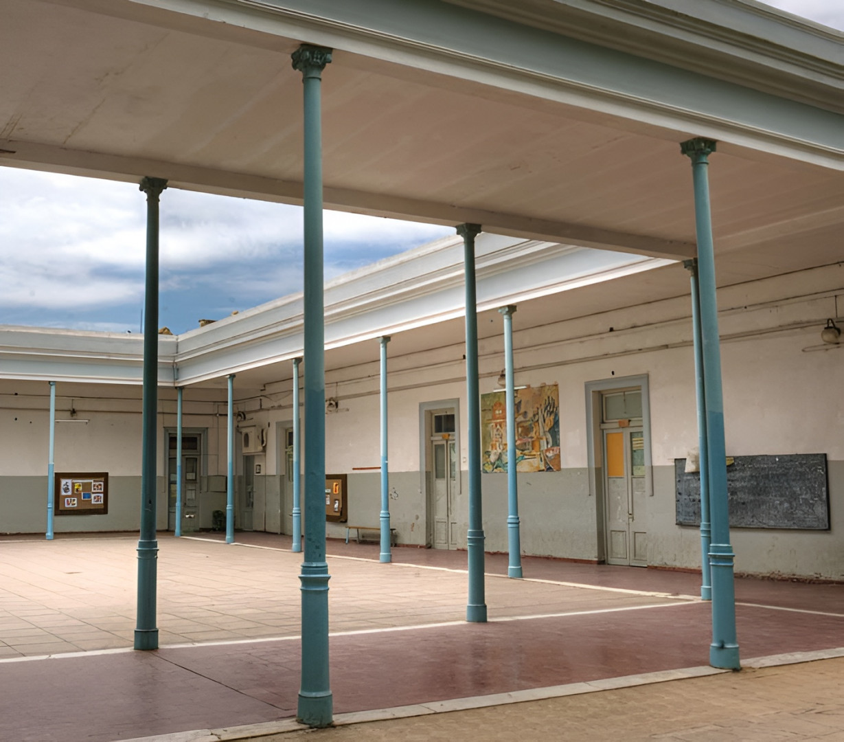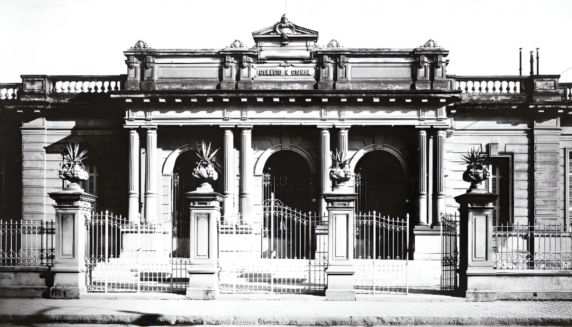 Son de destacar los pilares que sostienen los portones de entrada al edificio, coronados por macetones ornamentados por extrañas cabezas de “bigotudos”, quizá una referencia manierista que articula el fuerte almohadillado del pórtico de ingreso, los pares de columnas y la superposición de ese orden de dintel sobre columna con el de arco sobre pilar en la fachada principal. El edificio fue recuperado en 2021 mediante una restauración que le devolvió su calidad original.