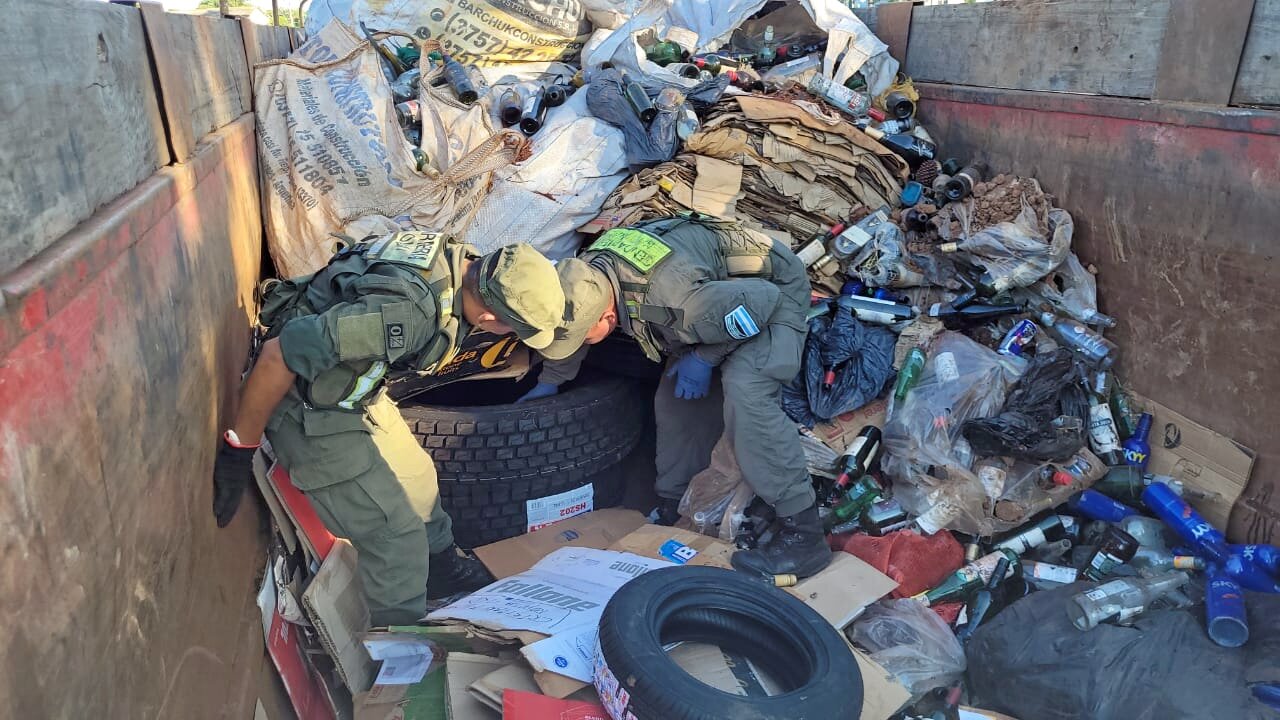 Los uniformados detectaron cartones debajo de los bolsones que contenían el material de reciclaje.