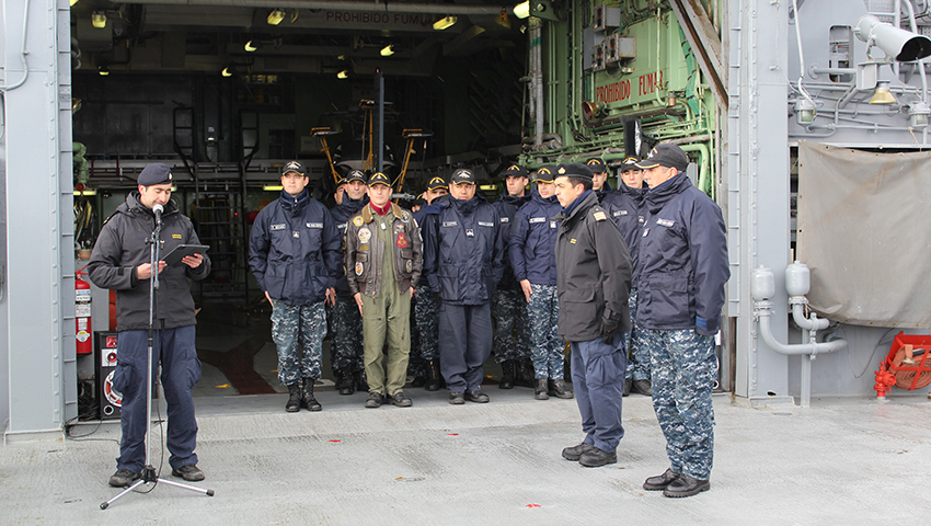 La misma fue presidida por el Comandante del “Sarandí”, Capitán de Fragata Raúl Andrés Mayer, acompañado por el Capitán de Fragata Juan Uribe, de la Armada de Chile. Participó además la dotación del destructor libre de guardias y el Teniente Segundo Frederick William Corthon Enriquez de la Armada de Chile, quien se desempeña como práctico.
