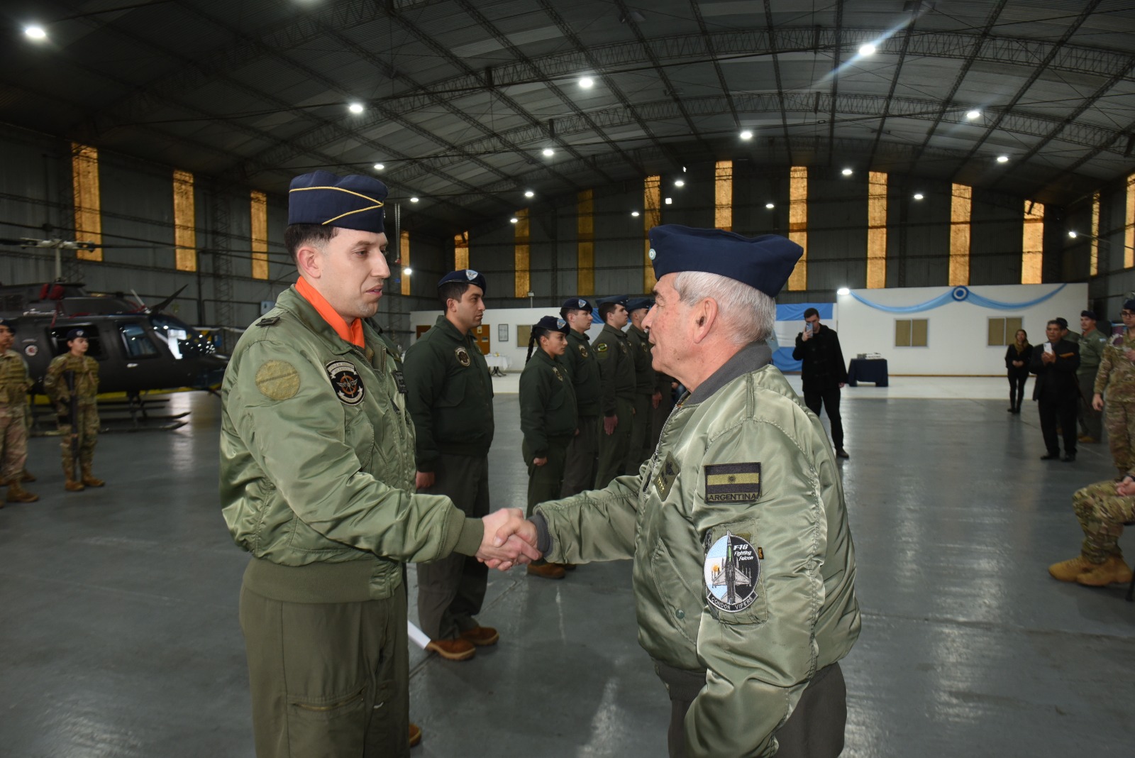 En el Aeródromo Militar de Campo de Mayo, se llevó a cabo la entrega de pañuelos a los futuros pilotos de helicópteros de las Fuerzas Armadas que realizaron su vuelo solo.