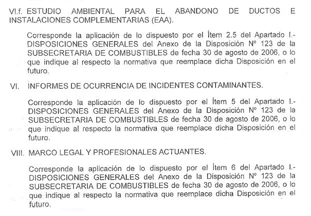 Que la Disposición N° 123 de fecha 30 de agosto de 2006 de la SUBSECRETARÍA DE COMBUSTIBLES, dependiente de la SECRETARÍA DE ENERGÍA, establece las Normas de Protección Ambiental para los Sistemas de Transporte de Hidrocarburos por Oleoductos, Poliductos, Terminales Marítimas e Instalaciones Complementarias, incluyendo a los ductos sumergidos dentro de su alcance.