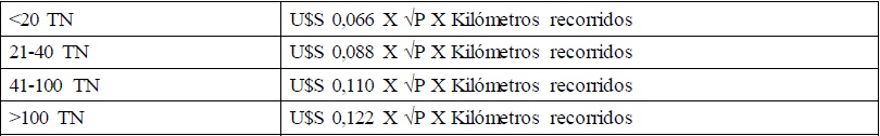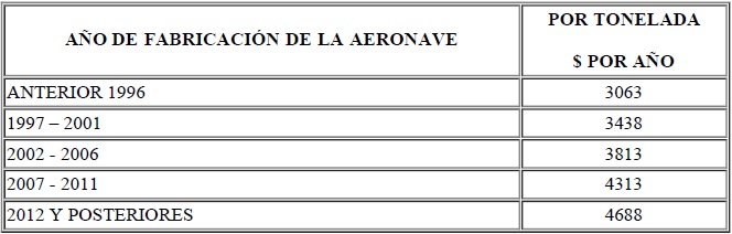Aplicable a las aeronaves de transporte regular y no regular cuyo peso resulte superior a 5.700 kg, por kilómetro recorrido y tonelada de peso.
