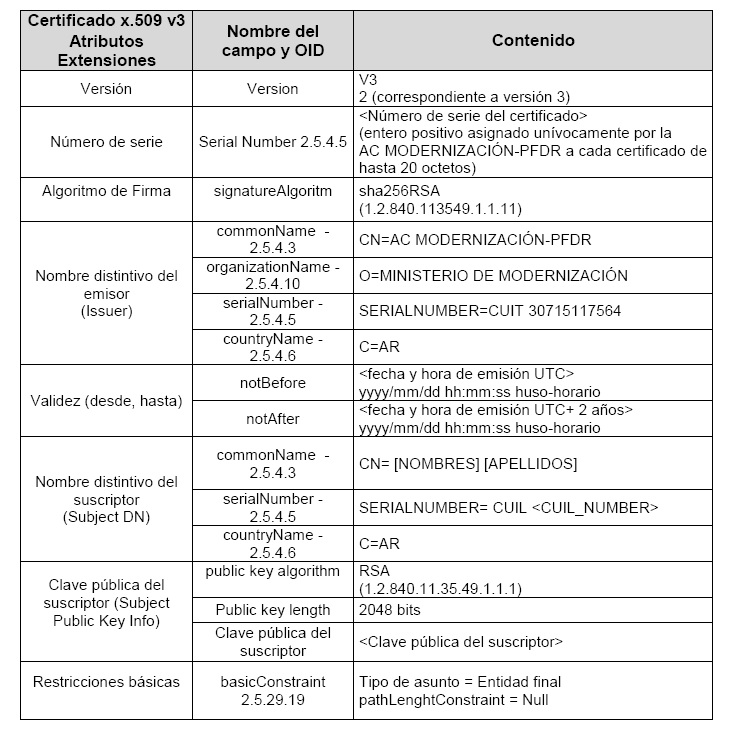 La AC MODERNIZACIÓN-PFDR emite los siguientes tipos de certificados digitales