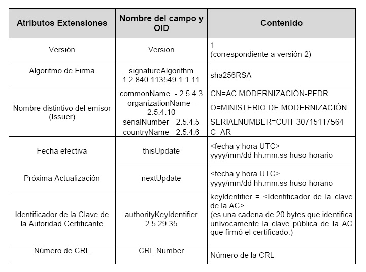 b) Para OCSP, cuyo suscriptor es el MINISTERIO de MODERNIZACIÓN, usado en el servicio de verificación en línea del estado de un certificado.