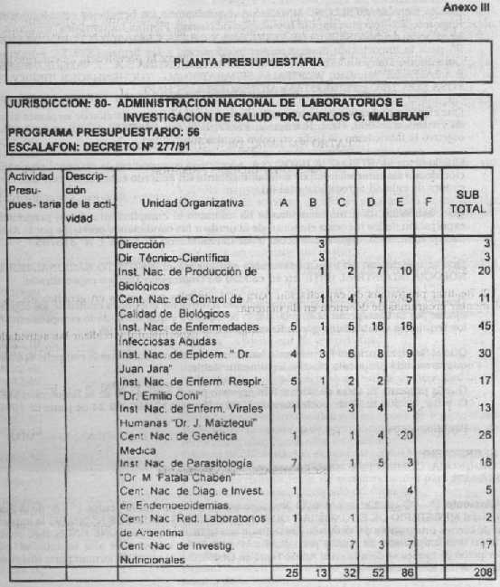 ADMINISTRACION NACIONAL DE LABORATORIOS E INSTITUTO DE SALUD 'DR. CARLOS G. MALBRAN'