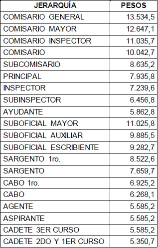 HABER MENSUAL PARA EL PERSONAL DE LA POLICÍA FEDERAL ARGENTINA A PARTIR DEL 1° AGOSTO DE 2017