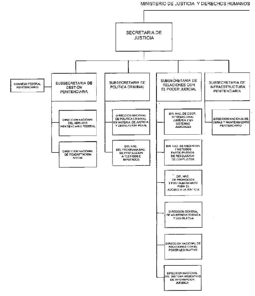 Art. 3° — Apruébase la estructura organizativa de segundo nivel operativo de la DIRECCION NACIONAL DEL SISTEMA ARGENTINO DE INFORMACION JURIDICA de la SUBSECRETARIA DE RELACIONES CON EL PODER JUDICIAL de la SECRETARIA DE JUSTICIA del MINISTERIO DE JUSTICIA Y DERECHOS HUMANOS, conforme el Organigrama y las Acciones que obran como Planillas anexas al presente artículo.