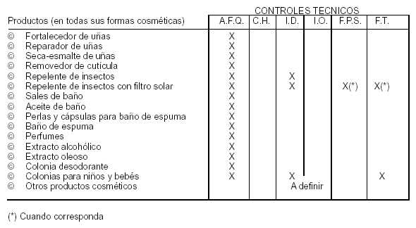 Art. 3° — Se determina que los controles de calidad que deben efectuarse de acuerdo con el tipo de productos, sus usos y fase etaria son los siguiente: