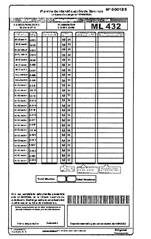 • Al pie de las columnas habrá DOS (2) campos para asentar la suma de machos y hembras identificados.