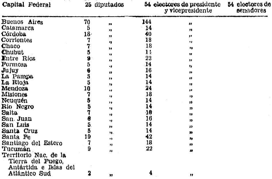 ARTICULO 3º - El número de diputados nacionales a elegir será de uno por cada 161.000 habitantes o fracción no menor de 80.500. A dicha representación se agregará, por cada distrito, la cantidad de tres (3) diputados, no pudiendo en ningún caso ser menor de cinco (5) diputados ni inferior a la que cada distrito tenía al 23 de marzo de 1976. El Territorio Nacional de la Tierra del Fuego, Antártida e Islas del Atlántico Sud, elegirá dos (2) diputados.