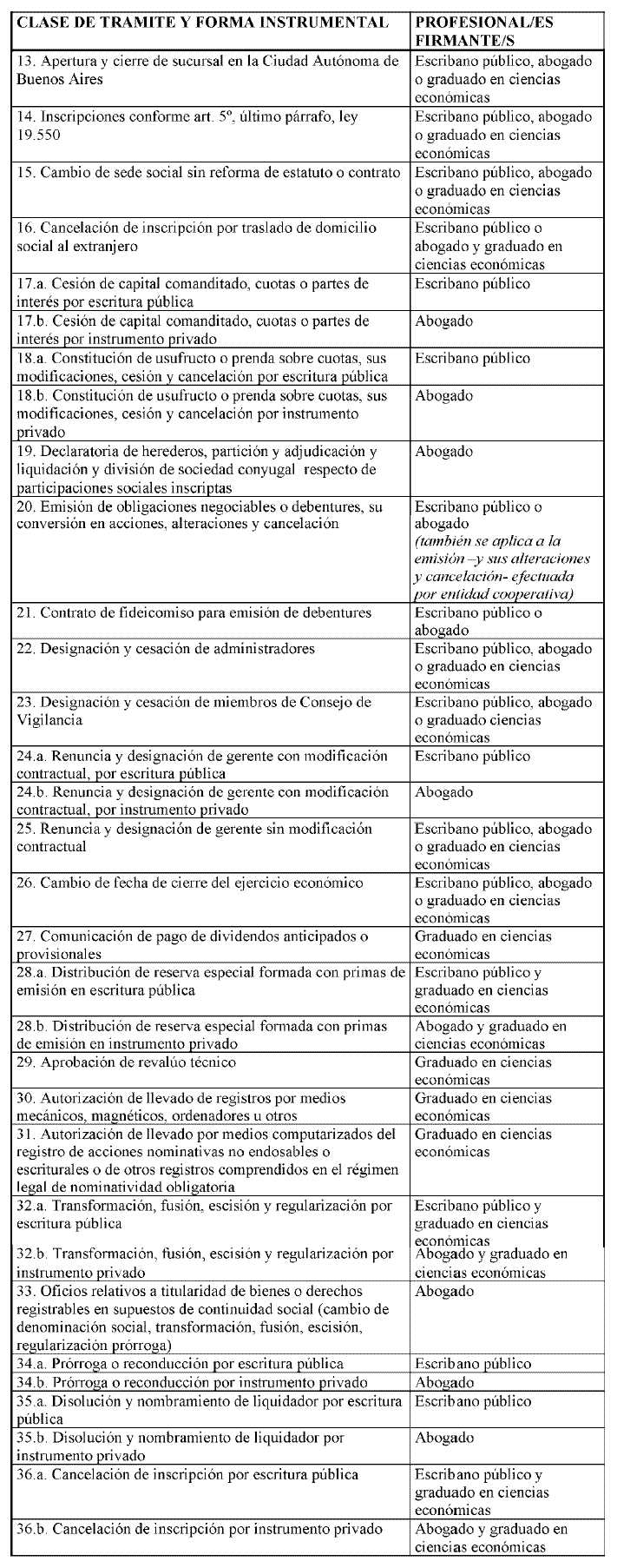 - Actos de sociedades fiscalizadas por la Comisión Nacional de Valores, exceptuadas inscripciones de constituciones por fusión o escisión y modificaciones de estatutos resultantes y/o adoptadas simultáneamente con la prórroga, reconducción o reducción del capital social); arancel: Formulario Nº 1 con 3 timbrados cuando los actos impliquen reforma de estatutos y Formulario Nº 9 con 3 timbrados en los demás casos.