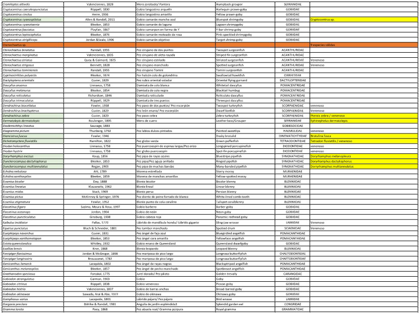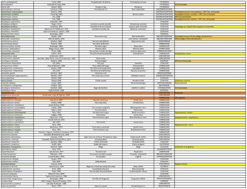 ESPECIES DE ORGANISMOS ACUÍCOLAS ORNAMENTALES AUTORIZADAS A INGRESAR AL TERRITORIO NACIONAL.