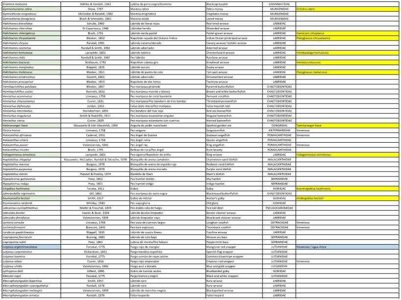 2.- Los nombres científicos dados por el importador deben coincidir con el nombre válido de la especie; las sinonimias o nombres anteriores no son válidas y se colocan para conocimiento y/o despejar dudas del importador, junto a la familia (clasificación taxonómica) y autor/es de cada taxón, así como también los nombres vulgares en español e inglés.
