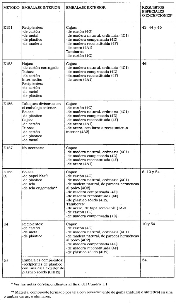 1/ =Si se citan dos valores. el primero se refiere a la masa neta máxima por recipiente interior, y el segundo. a la masa neta máxima del embalaje completo.