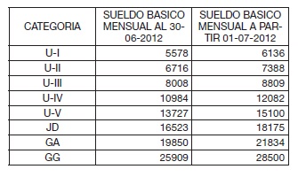 CUARTO: Se adjunta a la presente ANEXO que contiene las escalas salariales (Sueldos Básicos) correspondientes al mes de junio de 2012 y los acordados a partir de julio de 2012.