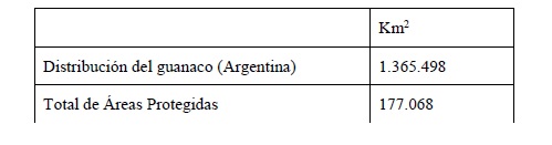 - En el Primer Censo Nacional de Camélidos Silvestres al Norte del Río Colorado, el área de distribución del guanaco se observó altamente fragmentada (Baigún et al. 2008). El acceso a los sitios con esta especie resultó dificultoso, denotando el corrimiento que tuvieron los guanacos hacia zonas desfavorables. La densidad mínima estimada en el 76 % de la superficie relevada fue menor a 1 individuo/km2.