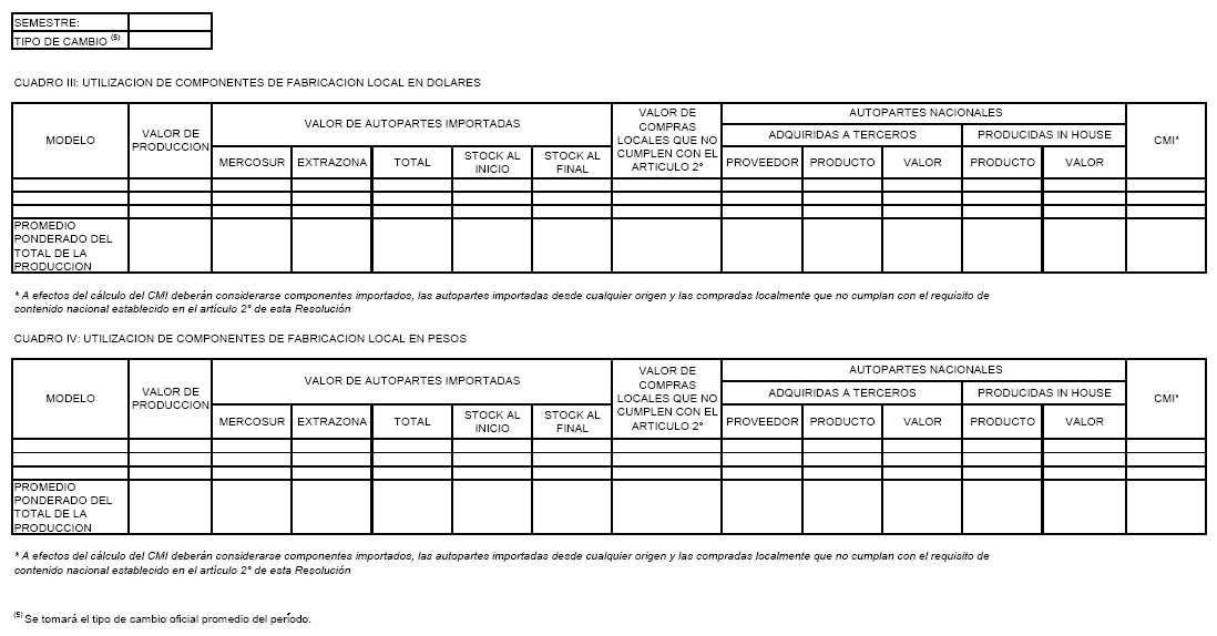 Que en los Cuadros III y IV de dicho Anexo se estableció la información que deberá ser provista por las empresas adheridas al Régimen de Aduana en Factoría a efectos de evaluar el cumplimiento de los compromisos por ellas asumidos en materia de utilización de componentes de fabricación local.
