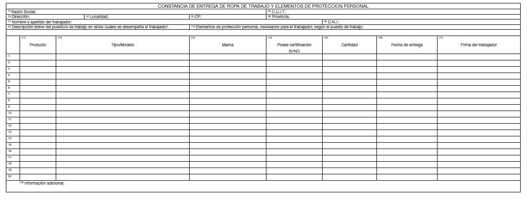 Art. 3° — El Formulario creado por el artículo precedente será de utilización obligatoria por parte de los empleadores. Deberá completarse un formulario por cada trabajador, en el que se registrarán las respectivas entregas de ropa de trabajo y elementos de protección personal.