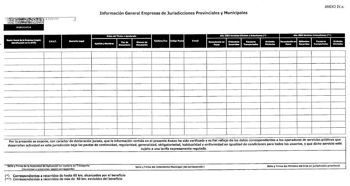 La información a suministrar para cada empresa de jurisdicción provincial o municipal es la siguiente: