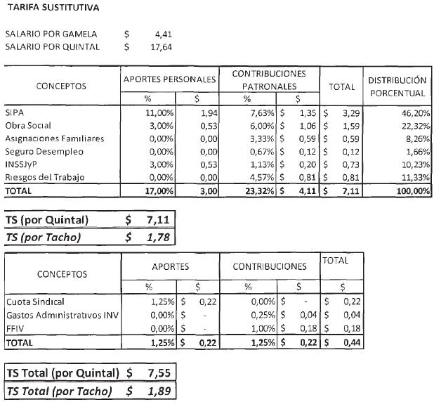 Que a los fines de mantener la representatividad de los aportes y contribuciones que la tarifa establecida sustituye, procede la homologación de una nueva tarifa sustitutiva.