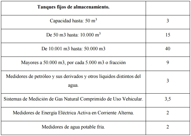 Aplicación: Las tasas que se detallan a continuación se aplicarán a los fabricantes, importadores, representantes, distribuidores, vendedores, reparadores e instaladores de instrumentos de medición. La tasa correspondiente a la designación de laboratorios es aplicable a laboratorios de tercera parte.