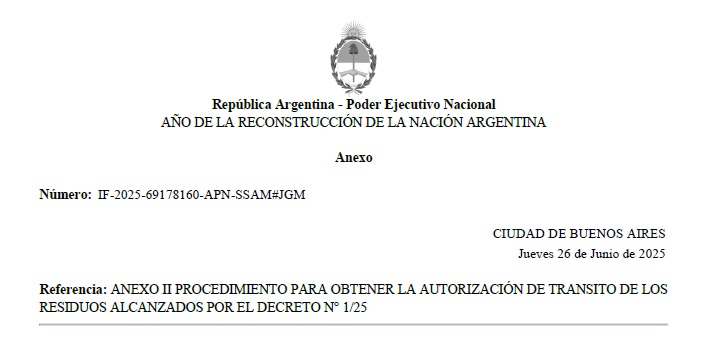 ANEXO II PROCEDIMIENTO PARA OBTENER LA AUTORIZACIÓN DE TRANSITO DE LOS RESIDUOS ALCANZADOS POR EL DECRETO N° 1/25.