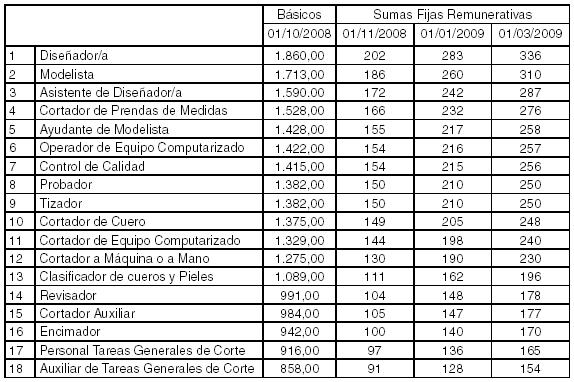 ARTICULO 4º - SUELDOS: En esta Convención Colectiva de Trabajo se detallan los sueldos básicos y clasificación de tareas de todas las ramas correspondientes al sector de corte de indumentaria y afines.