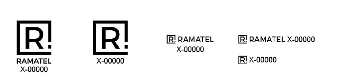 Los únicos casos posibles donde el número de Registro de RAMATEL podrá situarse a la derecha, serán en los correspondientes al uso del isologotipo horizontal e isotipo.