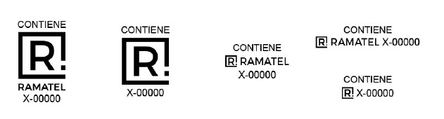 Para el diseño de la etiqueta se aceptará el isologotipo o isotipo RAMATEL. El número de Registro de RAMATEL deberá situarse inmediatamente debajo del isologotipo/isotipo elegido. Su alineación deberá ser centrada.
