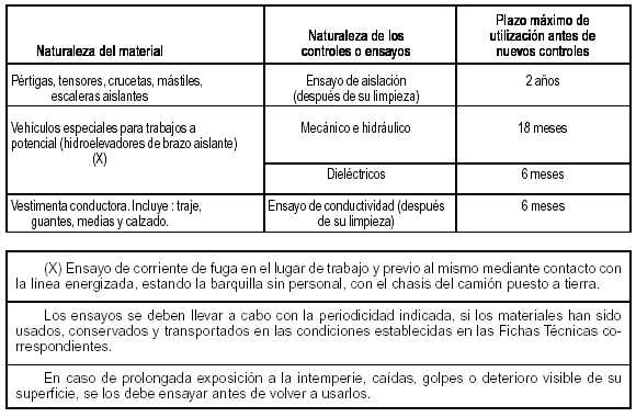 Por periodicidad de los controles y ensayos, se entiende el plazo, entre la fecha de habilitación del elemento al servicio y la fecha del nuevo control o ensayo según lo establecido en la tabla II del Anexo. Este plazo debe ser verificado en toda ocasión por el RESPONSABLE O JEFE DE TRABAJO.