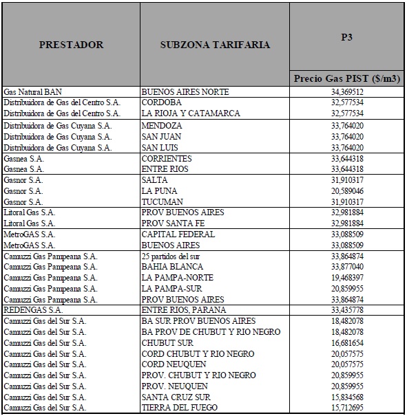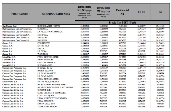 Que por la Resolución N° 610 de fecha 29 de julio de 2022 de la SECRETARÍA DE ENERGÍA del MINISTERIO DE ECONOMÍA se determinaron los precios en el Punto de Ingreso al Sistema de Transporte (PIST) para el gas natural, conforme se consignan en el Anexo (IF-2022-76271896-APN-SSH#MEC) que integra aquella medida, de aplicación a los usuarios y las usuarias residenciales del servicio público de gas natural por red, Nivel 1, de conformidad con la gradualidad y ajuste temporal establecido en el último párrafo del Artículo 4° del Decreto N° 332/22.