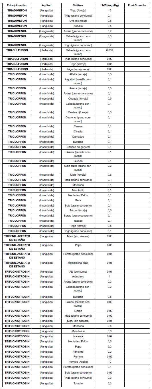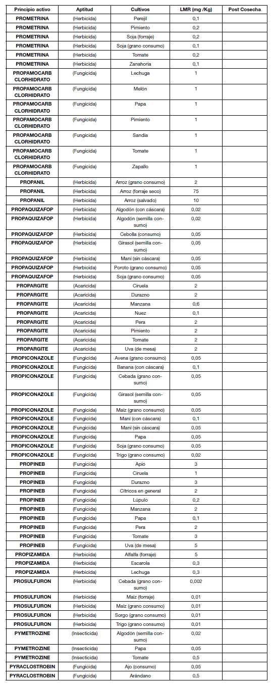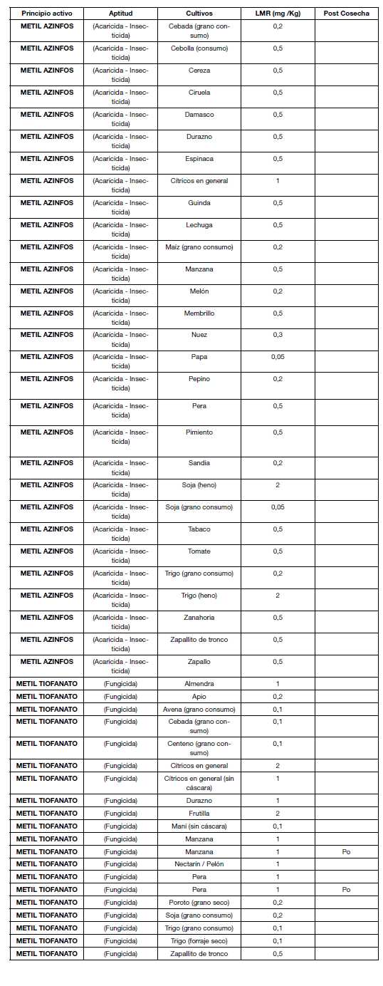 Po (Uso Poscosecha): LMR o tolerancia establecida a la sustancia activa utilizada para el tratamiento de los productos o subproductos vegetales, posterior a la cosecha.