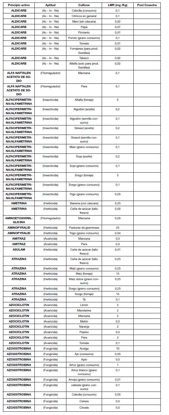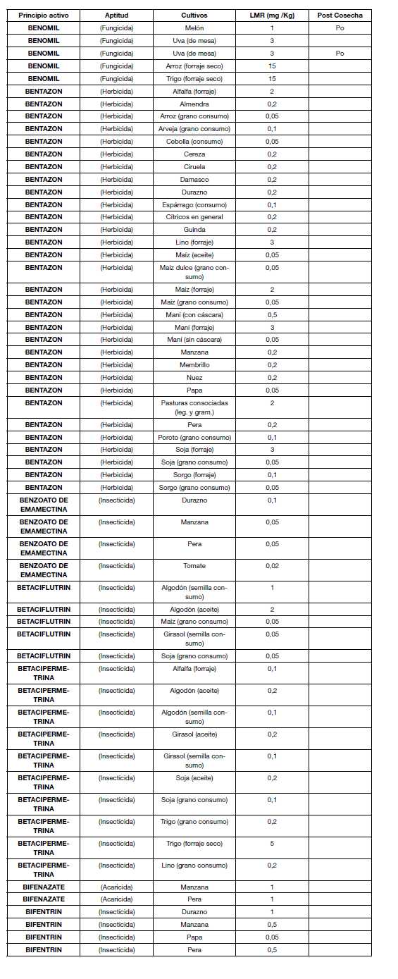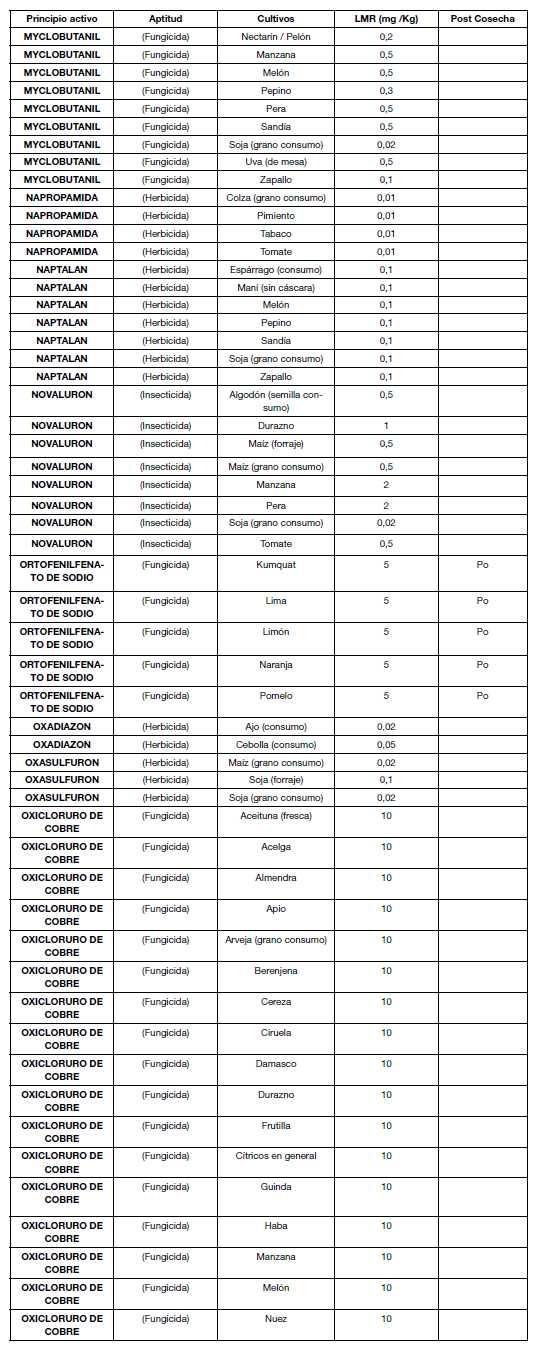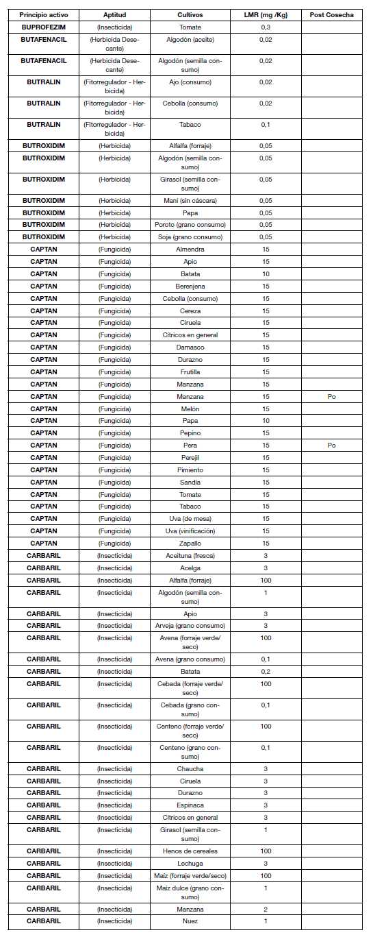 Que desde el dictado de la Resolución citada en el considerando precedente han sido aprobados nuevos principios activos y nuevos usos de los mismos, por lo que resulta necesario incorporarlos al listado de productos y de límites máximos de residuos.