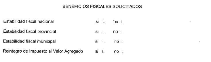 a.4) Solicitud de beneficios fiscales (Anexo IV, Formularios C, D y/o E que forman parte integrante de la presente resolución). No es obligatoria, por lo que se deberá incorporar sólo en los casos que se desee recibir dichos beneficios. Podrá presentarse conjuntamente con el resto de la documentación o con posterioridad.