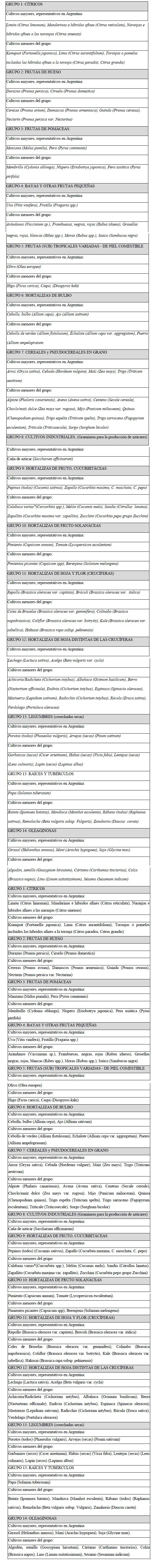 Tabla: Agrupación de Cultivos, mayores NO representativos y de cultivos menores para la REPÚBLICA ARGENTINA.