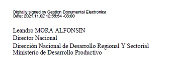 DIRECCIÓN NACIONAL: Dirección Nacional de Desarrollo Regional y Sectorial, dependiente de la SUBSECRETARÍA DE INDUSTRIA de la SECRETARÍA DE INDUSTRIA, ECONOMÍA DEL CONOCIMIENTO Y GESTIÓN COMERCIAL EXTERNA del MINISTERIO DE DESARROLLO PRODUCTIVO.