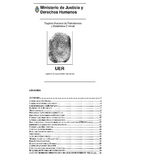 MINISTERIO DE JUSTICIA Y DERECHOS HUMANOS Unidades de Expedición y Recepción U.E.R.