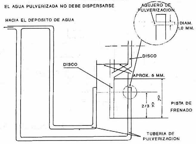 14.3.4.: Puede utilizarse refrigeración de aire; el flujo de aire debe dirigirse sobre el freno perpendicularmente al eje de rotación de la rueda. La velocidad de incidencia del aire sobre el freno no debe ser superior a DIEZ KILOMETROS POR HORA (10 km/h),