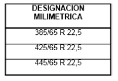 2.1. Entiéndese como cubiertas superanchas a las descriptas en la siguiente tabla o medidas intermedias:
