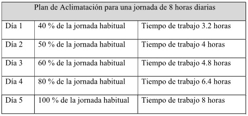 Cabe aclarar que los Valores Límites de Acción coinciden con los Valores Límites Permisibles para trabajadores no aclimatados.
