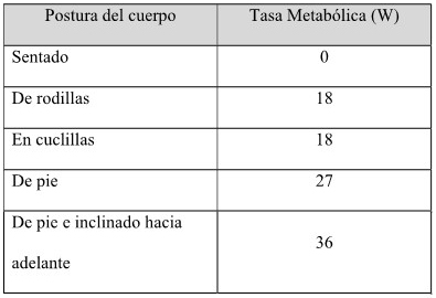 b) La tasa metabólica: producción de calor dentro del cuerpo a causa de la actividad física que se está realizando; y