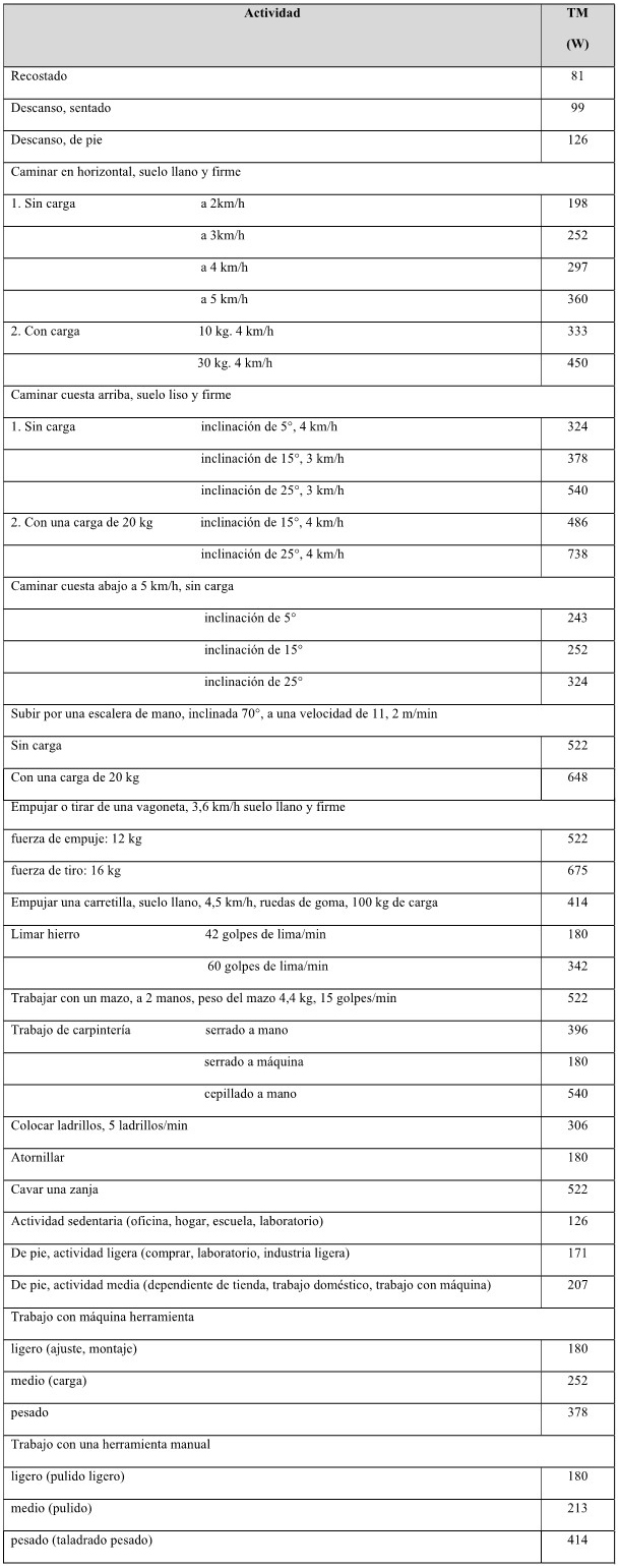 TM: Tasa Metabólica. Es la conversión de energía química en energía mecánica y térmica, y como tal, constituye una medida del gasto energético asociado al esfuerzo muscular y proporciona un índice número de actividad.