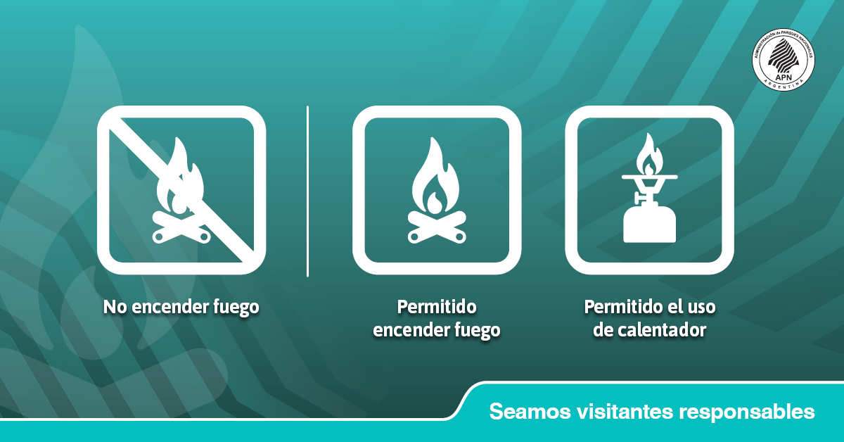 - Llevá siempre un calentador liviano y evitá hacer fuego. En caso de que tengas que hacerlo, respetá los lugares habilitados y tratá de usar un sitio de fogón ya utilizado en vez de inaugurar uno nuevo. Usá leña seca y caída que pueda cortarse a mano; los grandes troncos son hábitat de muchos organismos.