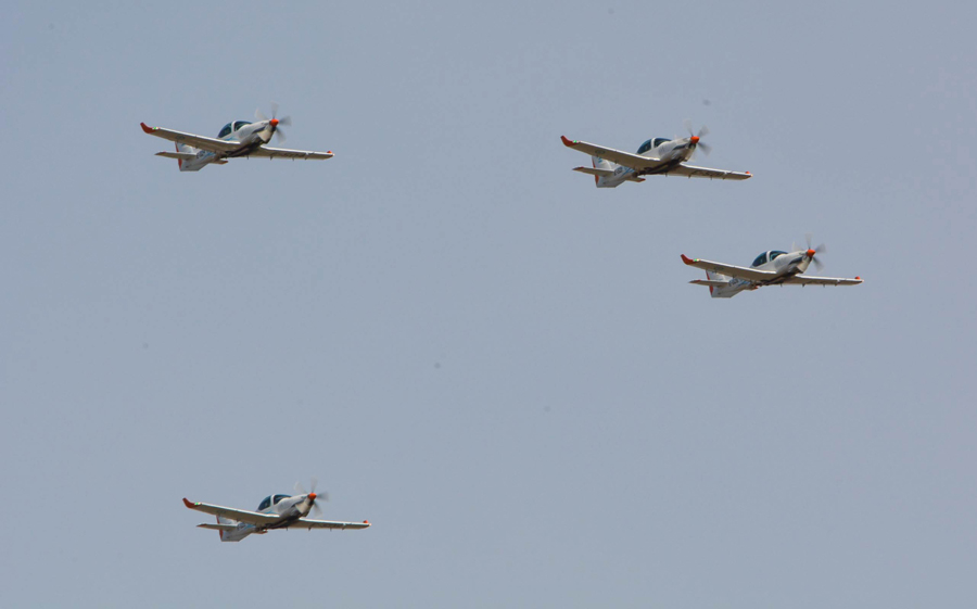 Por su parte, sobrevolaron los Beechcraft T-6 Texan de entrenamiento avanzado de la Escuela de Aviación Militar con tecnología de última generación.