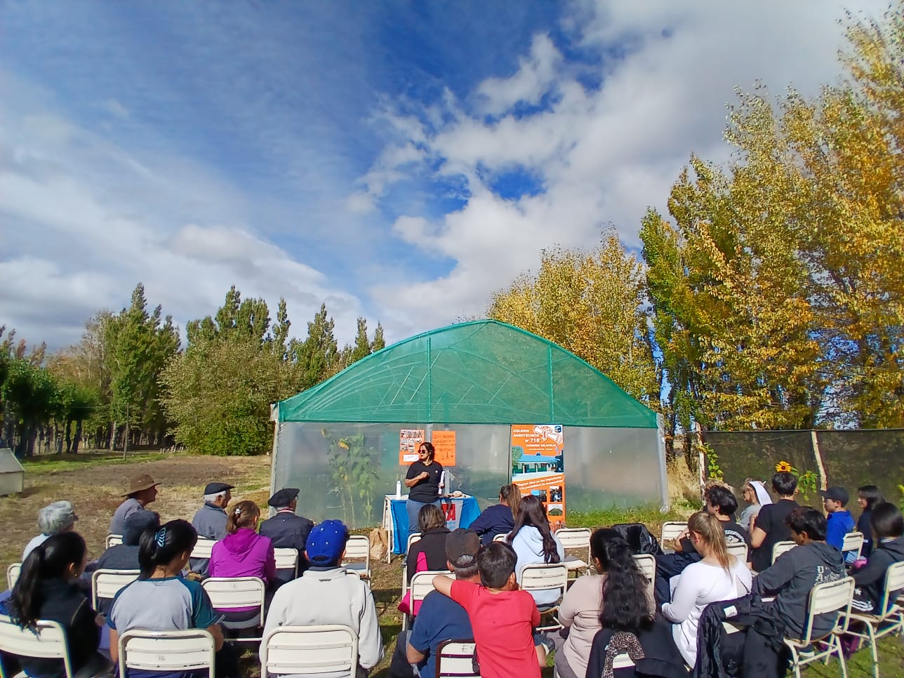 Estudiantes de la institución realizaron una introducción de la temática, donde comentaron resultados obtenidos en la localidad la temporada pasada. Luego Teresa Lopez Burgos del INTA Río Mayo dio detalles del ensayo realizado con este cultivo esa localidad, donde se evaluó la influencia del ciclo lunar en la fecha de siembra, comentando todo el procesos y pautas a tener en cuenta. Alfonso Beloqui de INTA Comodoro Rivadavia, fue el encargado de llevar adelante la parte práctica del taller en el sector de horticultura de la institución educativa.