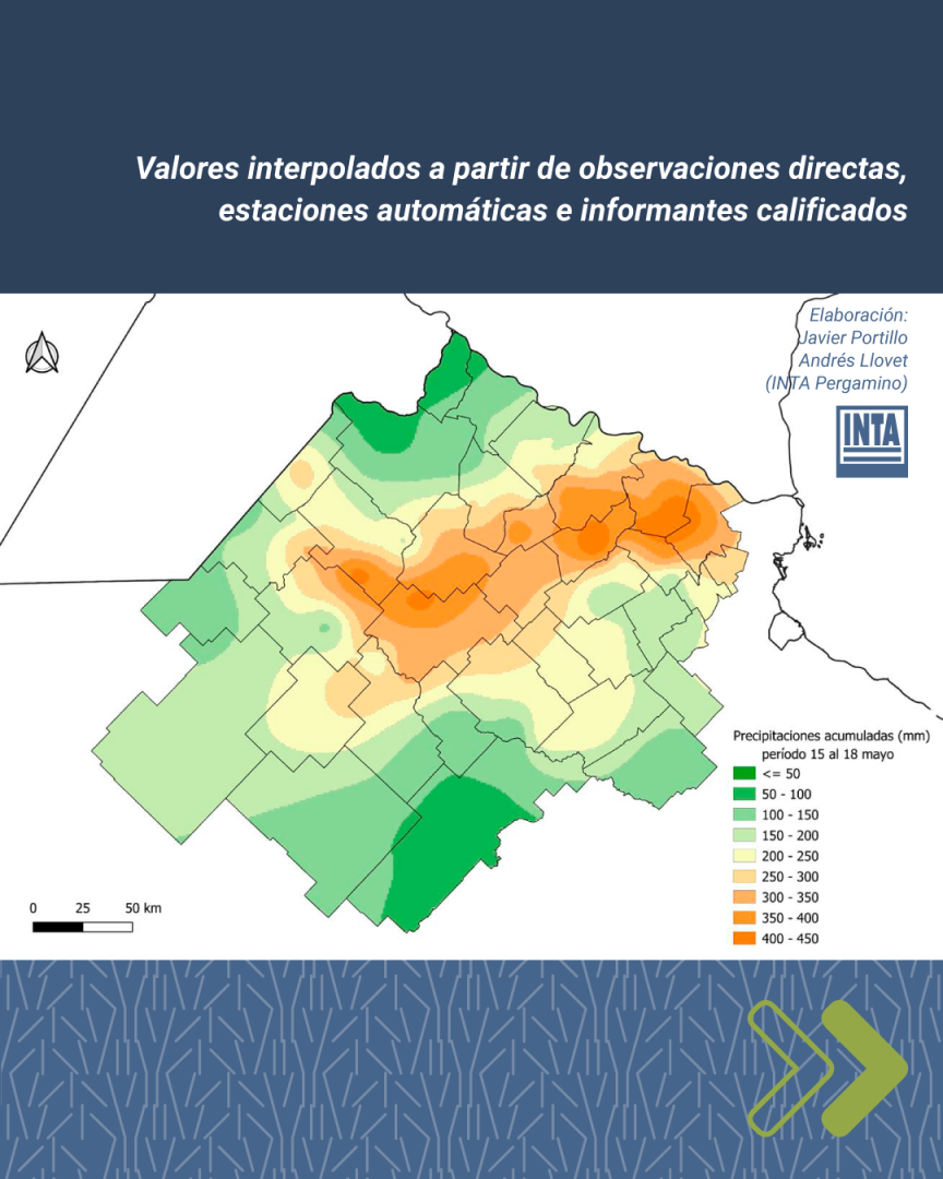 Las precipitaciones ocurridas entre el jueves 15 de mayo y la madrugada del domingo 18 se focalizaron en el norte de la provincia de Buenos Aires, con amplias zonas que acumularon en promedio 300 mm y registros puntuales que superaron los 400 mm.