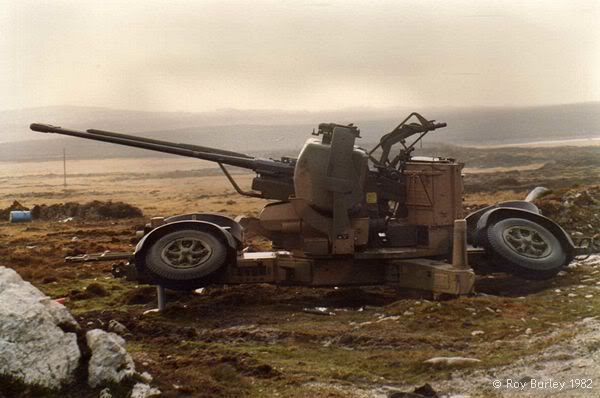 En la madrugada del 1ro de mayo de 1982 los primeros ataques aéreos de las fuerzas británicas ocasionaron la reacción inmediata de los medios de artillería antiaérea
