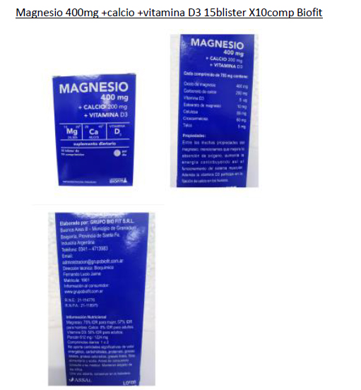 - Suplemento Dietario de Magnesio, Calcio y Vitamina D3 en comprimidos RNE Nº 21-114776, RNPA N° 21-118975