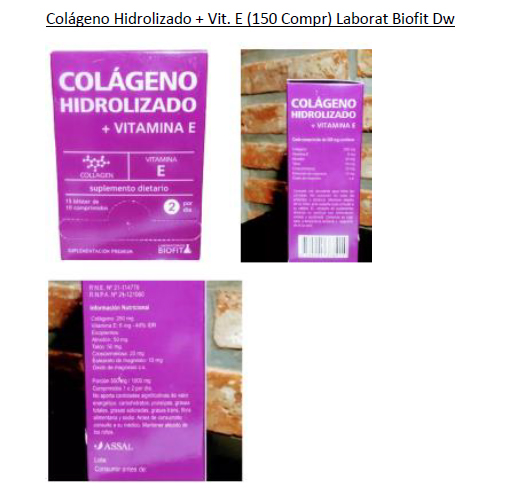 - Suplemento Dietario Colágeno Hidrolizado más vitamina E en comprimidos RNE Nº 21-114776, RNPA Nº 21-121060