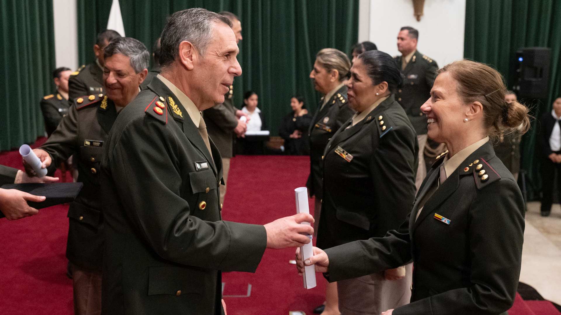 Posteriormente, el general Presti entregó los despachos al personal ascendido a través del Decreto 202/2025, así como al más antiguo de los promovidos a través del Decreto 633/2025 y los generales presentes entregaron los despachos a los flamantes coroneles.
